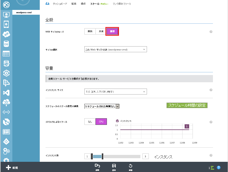 Windows Azure WEBサイトのモード変更