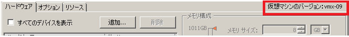 対象の仮想マシンアイコン右クリック -> 「仮想ハードウェアのアップグレード」